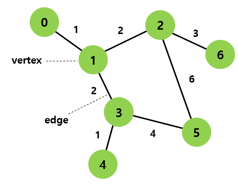 - 가중치 그래프(Weighted Graph)는 간선에 비용 부여