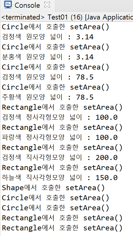 + 개인적으로 코드가 돌아가는 순서를 이해하기 위해 xx에서 호출한 setArea() 코드도 출력되도록 하였다.