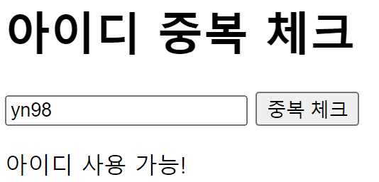 YENA라는 아이디는 DB에 값을 넣어놨기 때문에 중복이라고 아래 text로 보이게 된다.